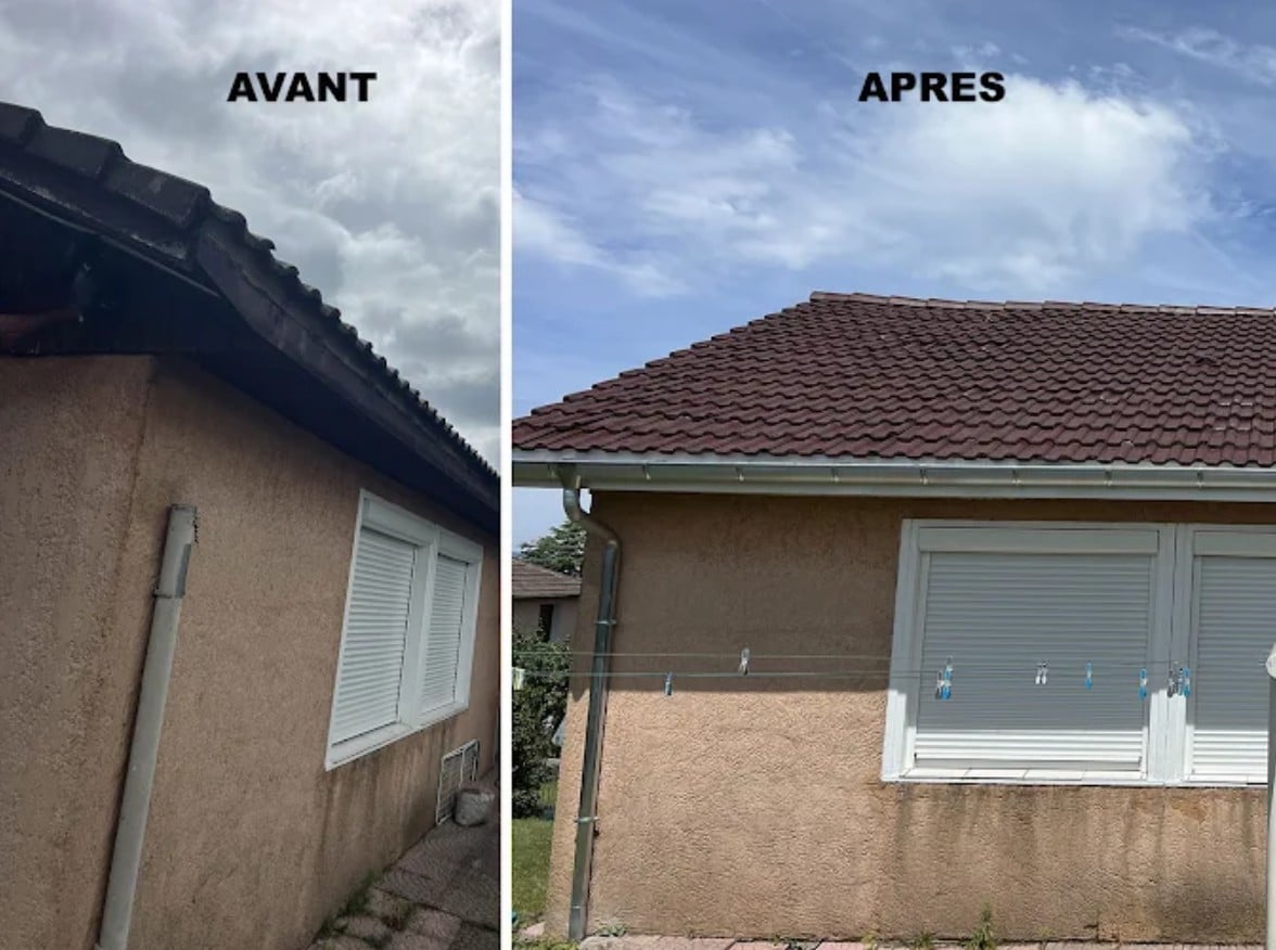 L’un des meilleurs moyens d’éviter une rénovation lourde est l’entretien régulier de la toiture. À Lyon, l’humidité, les feuilles et la mousse accélèrent le vieillissement des tuiles. Un nettoyage et démoussage de toiture tous les 2 à 5 ans permet de conserver une couverture saine, d’éviter les infiltrations et de prolonger la durée de vie du toit.